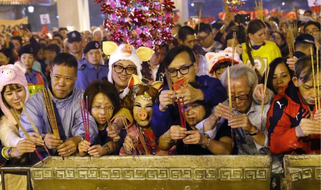 People go to temples to thank God and their ancestors for a peaceful last year and ask for good luck in the new year.