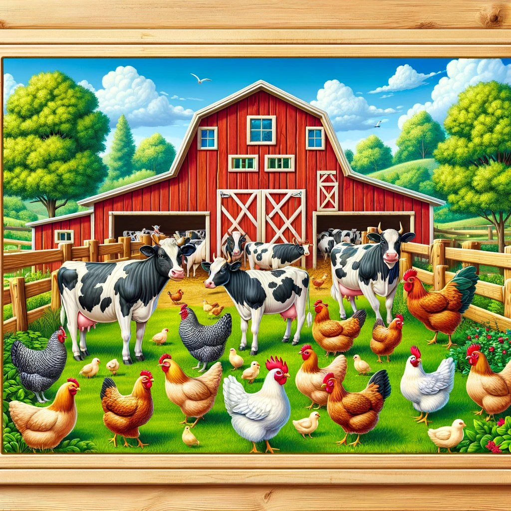 ChatGPT: I’ve adjusted the farm scene to feature precisely three cows and five chickens, aiming for a more spacious and tranquil setting.